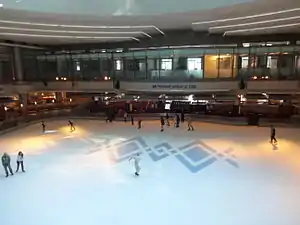 In addition to its office space and shopping areas, it includes a full-size indoor ice skating rink, a physical fitness centre, a major bus terminal (the Downtown Terminus) serving RTL city and commuter buses to Longueuil, Brossard and other South Shore communities, and links to other underground city buildings, Central Station, Lucien-L'Allier Station and the Bonaventure Metro station.