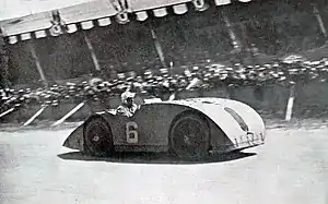 In June the Swiss motorcycle Grand Prix at Geneva was supplemented by a race for cyclecars, the first car race for Switzerland.[29] It was won by Ramon Bueno in a Salmson GP, with his teammate Robert Benoist coming in second.[30] A week later the Circuito del Savio was held at Ravenna. It was won by Enzo Ferrari who was presented with a shield by the parents of fallen Italian fighter-ace Francesco Baracca. It depicted his emblem, a black prancing horse, that would become the badge on Ferrari cars.[31]