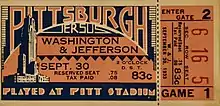 - ↑ "Pitt-W. & J. Game in Detail". Pittsburgh Sun-Telegraph. Pittsburgh, Pennsylvania. October 1, 1933. p. Part 2-2. Retrieved January 21, 2022 – via Newspapers.com.