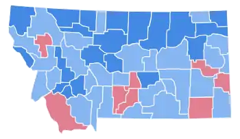 | Beaverhead | 1,632 | 48.41% | 1,725 | 51.17% | 14 | 0.42% | -93 | -2.76% | 3,371 |