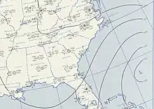 A low-pressure area formed along a dissipating cold front to the north of Puerto Rico. The system moved westward, developing some tropical characteristics by October 13.[5] The next day, the system became a tropical storm over the Straits of Florida.[3] On October 15, it crossed over South Florida near Homestead with winds of 60 mph (95 km/h). The storm was never fully tropical, as its winds and precipitation extended far away from the center.[5] The storm intensified further over the Florida peninsula, peaking at 65 mph (105 km/h) early on October 16.[3] After affecting Florida, the storm crossed the western Atlantic and moved across the Outer Banks.[5] The storm became extratropical on October 17, and the next day it was absorbed by another extratropical storm.[20]