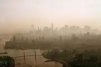 Even before the 1966 smog episode, scientists, city officials, and the general public recognized that New York City—and most other major American cities—had serious air-pollution problems.[15] According to scientific studies from the period, more than 60 metropolitan areas in the US suffered from "extremely serious air pollution problems", and "probably no American city of more than [50,000] inhabitants enjoys clean air the year round."[16] The air "over much of the eastern half of the country [was] chronically polluted", and the nation's most-polluted population centers were New York City, Chicago, Los Angeles, St. Louis, and Philadelphia.[16]