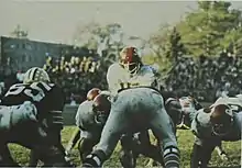 Coming off of a bye week, 18th-ranked Iowa State went on the road as a 13-point underdog for its first Big Eight conference game, suffering its first loss against 13th-ranked Colorado, 22–34.[19][20][21][22] The ranked vs. ranked matchup was attended by a sellout crowd of over 51,000, the largest sporting event in the state of Colorado to that date.[23] The Buffaloes gained a 14–0 lead on the first two drives and never let the Cyclones get closer than seven points for the rest of the game. The Cyclones were stymied by penalties on both sides of the ball, with nine for 121 yards, including a defensive offsides on a Buffaloes field goal attempt that kept the Colorado drive alive.[24]