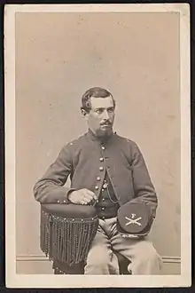 In August 1864, Ira McL. Barton, the captain of Company B, requested further recruits and, with authorization granted to organize a battalion-sized unit, returned to New Hampshire to take part in the raising of an additional four companies.[2] Recruiting within the cities of Nashua, Concord, Laconia and Dover, the number of volunteers exceeded what was needed. The state adjutant applied to the War Department for authority to continue the formation of companies, and by November 1864 nearly had the required number of men to be organized into a proper regiment. To do so, the 1st New Hampshire Light Battery, who had just gone through its reenlistment following the end of a three-year term of service, became "Company M" of the 1st NH Heavy Artillery on 9 November. However, they were soon detached and returned as light artillery in Hancock's II Corps.