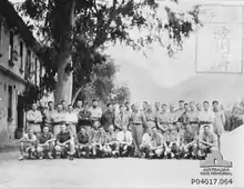 With an authorised strength of around 900 personnel, like other Australian infantry battalions of the time, the battalion was formed around a nucleus of four rifle companies – designated 'A' through to 'D' – each consisting of three platoons.[4] Shortly after being raised it moved to Trawool, Victoria, to undertake infantry training on 11 July. In September, the battalion was then required to march 235 kilometres (146 mi) to Bonegilla,[5] arriving on 4 October. There they undertook further training before being sent to Sydney in April 1941 to begin the move to New Britain,[6][7] where they were to form part of a garrison force being established in response to concerns about war with Japan in the Pacific.[8] Upon formation, the 2/22nd's commanding officer was Lieutenant Colonel Howard Carr; he would remain in command of the battalion throughout its brief existence.[6]