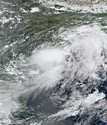 On June 8, a low-pressure area formed in the eastern Arabian Sea. A nearby buoy recorded winds of 45 km/h (30 mph), which organized into a depression on June 10. While remaining nearly stationary, the depression quickly intensified into a deep depression. The system later began a slow westward movement, due to a ridge to the north.[1] On June 11, and again on the following day, the JTWC issued a Tropical Cyclone Formation Alert (TCFA), although the system never strengthened beyond its initial stages.[14] Strong wind shear caused the depression to weaken, and the IMD downgraded it to a remnant low on June 13.[1]