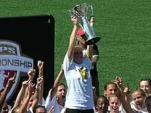 FC Gold Pride raise the 2010 WPS Championship trophy