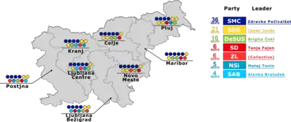 ![]() Results of the 2014 Slovenian Legislative election by multi-member constituency.[1] | |||||||||||||||||||||||||||||||||||||||||||||||||||||||||||||||||||||||||||||||||||||||||||||||||