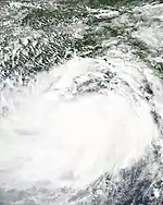 On October 18, the JTWC noted an area of thunderstorm activity located in the eastern Bay of Bengal as having a partially exposed low level center while located in a marginally favorable environment for further development.[46] Later that day, the IMD upgraded the system to Depression BOB 05 as the system developed formative banding surrounding a center of deep thunderstorm activity.[47][48] Despite being initially forecasted to intensify further, the depression tracked into an environment with strong wind shear and failed to intensify, making landfall on the Odisha coast near Paradip during the afternoon of October 20.[49] After landfall, the system remained near the coastline, allowing moisture incursion from the Bay of Bengal to prevent rapid weakening. Initially tracking northwards, the system soon recurved towards the northeast before weakening into an area of low pressure early on October 22, while located over northeastern Bangladesh, Meghalaya, and southern Assam.[50] [51]