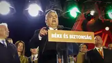 Hungary's incumbent prime minister Viktor Orbán won re-election to a fourth term. Addressing his supporters after the partial results showed his Fidesz party leading by a wide margin, Orbán said: "We won a victory so big that you can see it from the moon, and you can certainly see it from Brussels".[3] Opposition leader Péter Márki-Zay admitted defeat shortly after Orbán's speech.[4] Reuters described it as a "crushing victory".[5]