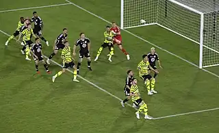 In the 37th minute, Havertz challenged Sean Longstaff earning him a yellow card. The VAR check was quick and the referee's original decision stood.[177][179] Upon replay, the Germany international missed Longstaff completely with his leading leg and only caught him with his trailing leg that was fully bent in the follow-through.[177][179][180] The challenge sparked a players' melee that took referee Attwell some time to control, with three Newcastle players including Longstaff shown yellow cards.[177][180][181]