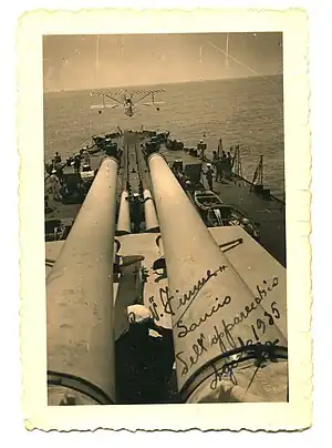 - ↑ Santarini, Marco (2017). La Condotta del tiro navale da bordo nella Regia Marina 1900-1945. Roma: Ufficio Storica della Marina Militare. p. 159. ISBN 9788899642105.