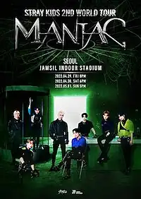 - ↑ "Stray Kids 2nd World Tour "Maniac" in Seoul 티켓오픈공지" [Stray Kids 2nd World Tour "Maniac" in Seoul Ticket Opening Notice]. JYP's Fan (in Korean). March 28, 2022. Archived from the original on March 26, 2023. Retrieved March 28, 2022.