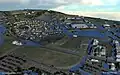 Modelling the effects on the built environment of natural hazards such as riverine flooding, storm surges and tsunami is critical for understanding their economic and social impact on our urban communities. Geoscience Australia and the Australian National University have developed a freely available hydrodynamic inundation modelling tool called ANUGA to help simulate the impact of these hazards. Based on research conducted at the Australian National University in the nineties, the development of ANUGA was commenced at Geoscience Australia in 2004.[4] Although the initial aim of ANUGA was a capability to model inundation from storm surge events, the focus was redirected to tsunami inundation in the wake of the 2004 Indian Ocean earthquake and tsunami.[5][6] The first public open source release of ANUGA took place in December 2006. In 2007 after approaches from Local Government Engineers, a rainfall routine was added. This allows rainfall to be placed directly over the topography described in the computational domain. A time series can be applied to a polygon, or a series of polygons. Alternatively a rainfall grid can be applied. This is particularly useful for applying RADAR rainfall. ANUGA can model culverts and bridges with code from the open source Watershed Bounded Network Model (WBNM){Boyd, Rigby, VanDrie}, having a pipe, box and trapezoid routine. Development continues to create an arbitrary shape culvert solver and linking to a 1D piped network model such as SWMM. ANUGA is stable even in extreme flow with high Froude numbers. An example of this is the 1928 St Francis Dam Break in California that resulted in extreme flow velocities and complex waves in a tortuous valley. ANUGA ran this model with full volumetric mass balance preserved at all times and no instabilities anywhere in the model.