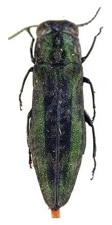 2. Bellamy, C. L. "Genus Agrilus Curtis 1825". The World of Jewel Beetles (Insecta: Coleoptera: Buprestidae). The Coleopterists Society. Archived from the original on 15 February 2016. Retrieved 25 April 2018.