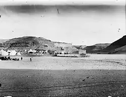 A view of the fort from the southeast, with the Hejaz mountains in the background and Bedouin encampments immediately to the west of the fort, 1907
