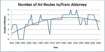 The number of air routes to and from Alderney is currently at its lowest since 1968