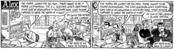 Alex is a British cartoon strip by Charles Peattie and Russell Taylor. It first appeared in the short-lived London Daily News in 1987. It moved to The Independent later that year and then to The Daily Telegraph in 1992. A translated version was published in the German newspaper Financial Times Deutschland.[1] It was also published translated into Dutch for some years in the main financial newspaper of the Netherlands, Het Financieele Dagblad (FD), around the turn of the century.
