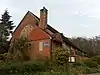 Much of the southern and central part of present-day Wealden was covered by the vast Roman Catholic parish of the Our Lady of Ransom Church, Eastbourne.[77][note 2] The strength of Protestant Nonconformism in the East Sussex countryside led to anti-Catholic feeling locally, and it was difficult to find suitable premises outside Eastbourne to celebrate Mass for the small number of Catholics in the area.[78] Eastbourne's parish priest founded a Mass centre in Hailsham in 1917, and numbers of worshippers grew to the extent that the rented premises (the hay-loft of a brewery's stables) were swapped for a purpose-built church in 1922.[79] The present St Wilfrid's Church dates from 2015.[80] A church was also built in Polegate in 1938;[81] St George's Church is now part of a joint parish with St Wilfrid's.[82] The area around Uckfield has supported two Catholic churches since the late 19th century, in the town itself and at Heron's Ghyll; they are also joined as one parish.[83] St John the Evangelist Church at Heron's Ghyll dates from 1896–97, but a Catholic mission was founded there 30 years earlier by poet Coventry Patmore. Frederick Walters, its architect,[84] also designed Uckfield's first Catholic church; it was replaced by the present distinctive concrete-framed Church of Our Lady Immaculate and St Philip Neri, completed in 1958.[57][85] Crowborough's church opened in 1911 and was enlarged in 1922.[86][87] In Mayfield, an oratory dedicated to St Thomas of Canterbury in the convent school at the Old Palace was used for public Masses from 1932, although it was not formally registered for worship until 1946[88] and for marriages the following year.[89] A permanent church of the same dedication was completed in 1957 to the design of prolific local architect Henry Bingham Towner.[90] Catholic worship in the Wadhurst area was focused on the chapel at The Mount Novitiate House of Fathers of Charity, originally founded by Rosminians, but they built the present Church of the Sacred Heart in 1929 for use by the general public.[91] St Catherine's Church was built in 1953 to serve Heathfield, but it has been demolished and local Catholics now worship at the chapel of a Benedictine convent in nearby Cross-in-Hand.[92] Churches were also opened in Forest Row in 1958[93] (closed 2009)[94] and both Pevensey Bay[75] and Rotherfield in 1963[95] (closed 2016[96] and 2019 respectively).[97][note 3]