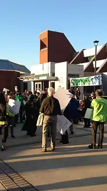 Protestors gathering in support of sanctuary legislation, which Kittleman vetoed