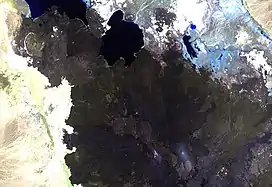 Alu is a system of volcanic fissures, located in Ethiopia. The fissures have produced silicic lava flows, and other fissures south of the volcano have been the source of huge youthful basaltic lava flows, which enlarge to the north as far as Lake Bakili. There is major fumarolic activity, located on parallel faults, some with 100-m uplifts.[1]