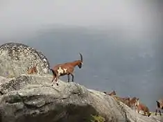 Throughout the region, bird populations are diverse and include nesting pairs of Golden eagles.[11] Mammal populations are marked by the presence of Wild boar (Sus scrofa), Roe deer (Capreolus capreolus), European badger (Meles meles), Granada hare (Lepus granatensis) and European rabbit (Oryctolagus cuniculus).[11]