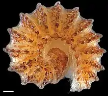 The genus Ammodesmus was named in 1896 by Orator F. Cook in the description of Ammodesmus granum. The genus was thought restricted to West Africa (Guinea, Liberia and Ivory Coast) until the 2015 description of A. congoensis from the Democratic Republic of the Congo. A. congoensis differs from the other two species in lacking ozopores (defensive glands), and has conspicuous sexual dimorphism, with females bearing sparse, long setae.[3] A. congoensis and A. granum are notable as the only two species in the order Polydesmida in which each sex can have 18 or 19 segments; intraspecific variation in segment number within sex is rare in this order.[3][1][4]