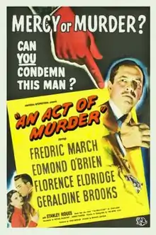 An Act of Murder (also known as Live Today for Tomorrow and I Stand Accused)[2] is a 1948 American film noir directed by Michael Gordon and starring Fredric March, Edmond O'Brien, Florence Eldridge, and Geraldine Brooks. It was based on a novel by the Austrian writer Ernst Lothar. It was entered into the 1949 Cannes Film Festival.[3]