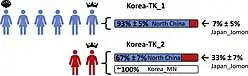 Modern Koreans are overall more similar to northeast Asians than to southeast Asians.[68] The reference population for Koreans used in Geno 2.0 Next Generation is 94% Eastern Asia and 5% Southeast Asia & Oceania.[69]