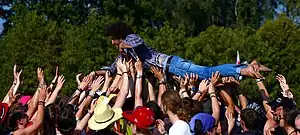 The band was selected by Live for Live Music as the top performance pick.[21] SoundFuse Magazine stated "This was easily one of the most energetic moments of the weekend," noting the crowds lively dancing and attempts to rush onto the stage.[22]