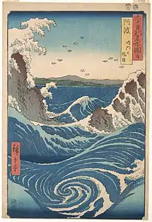 Hiroshige ukiyo-e "Awa" in "The Famous Scenes of the Sixty States" (六十余州名所図会), depicting the Naruto whirlpools