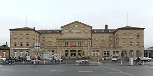 The station was established in 1844 as the terminus of the Nuremberg–Bamberg line built by the Royal Bavarian State Railways. On 25 August 1844, the first train ran into the station, although official operations began in October 1844. Shortly after its opening in April 1845, the station became the headquarters of the Royal Bavarian State Railways in Bamberg.[5] In 1846 the line was extended to Hof in the north. Construction of the building still continued at this time and it was opened in September 1846. The building was designed by the architect Friedrich Bürklein, who designed several stations in Bavaria.