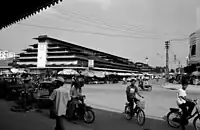 Around 7 kilometers (4 mi) south of Battambang, in Odambang commune, stands the city's Bahá'í House of Worship. Inaugurated in 2017, it is notable for being one of the first Bahá'í temples to be built to serve a single locality, and the first local Bahá'í house of worship to be constructed. The round, nine-sided edifice features a central dome and spire, and winged parapets that have been called reminiscent of Phnom Penh's Chaktomuk Conference Hall.[8][9]