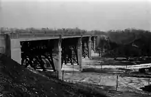 Bloor Street Viaduct looking from east side of Don Valley to west. To right of viaduct is "Sugarloaf Hill", which was removed to build the Bayview Extension.