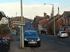 ![]() Bearwood sign on Portland Road looking towards Cape Hill, Smethwick | |