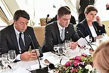 Beata Maria Szydło (Polish: [bɛˈata ˈmarja ˈʂɨdwɔ] , née Kusińska [kuˈɕij̃ska], 15 April 1963) is a Polish politician who has served as a Member of the European Parliament (MEP) since 2019. A member of Law and Justice (PiS), she previously served as Prime Minister of Poland from 2015 to 2017. Szydło became the third woman to hold the office, after Hanna Suchocka and her immediate predecessor Ewa Kopacz.[1] She currently is a vice-chair of the European Conservatives and Reformists (ECR) group in the European Parliament.[2]