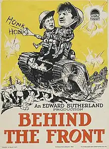 Behind the Front is a 1926 American silent war comedy film directed by A. Edward Sutherland and starring Wallace Beery and Raymond Hatton. It was produced by Famous Players–Lasky and distributed by Paramount Pictures.[1][2] The film was based on the novel The Spoils of War by Hugh Wiley.[3]