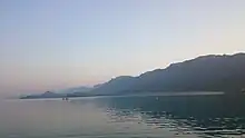 There are no natural lakes in Bilaspur district, but the artificial Gobind Sagar is one of the largest lakes in India. It stores a huge volume of water, which is used for both irrigation and electricity generation.[3] It is formed by the Bhakra Dam, which was completed in 1963. The lake is 90 km long and its total area is 168 km2. About 90% of this area belongs to Bilaspur district; the remainder belongs to Una district.[3] The lake's water level fluctuates. It is designated as a waterfowl refuge, and about 50 species of fish live in its waters. [4] Gobind Sagar is a popular tourist destination,[3] and it is also a site for various recreational activities like fishing, swimming, sailing, rowing, and water-skiing.[4]