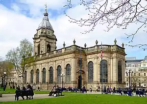 Colmore Row is the centre of the Colmore Row and Environs Conservation Area which consists of St. Philip's Cathedral.[10] The Jewellery Quarter is also covered by a conservation area.[11] Other quarters in the city centre are the Chinese Quarter, Irish Quarter and Learning and Technology Quarter.