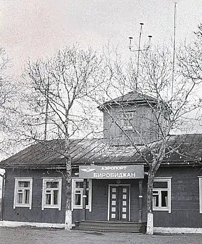 Birobidzhan Yuzhniy Airfield (ICAO: UHHB) is an airport located in Birobidzhan, Jewish Autonomous Oblast, Russia. The airport serves Khabarovsk.