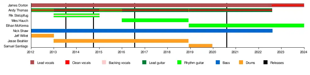 On 11 December 2018, the band announced on their official Facebook page that drummer Jesse Beahler and guitarist Wes Hauch had departed the band on good terms to be replaced with drummer Samuel Santiago (Gorod, Beyond Creation, Arkhon Infaustus) and guitarist Ethan McKenna who was the first guitarist that founding members Andy, James and Nick originally asked to join the band.[12]
