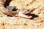 Nine snake species are found in this arid environment, the plains hog-nosed snake, western coachwhip, bullsnake, longnose snake, plains blackhead snake, blackneck garter snake, plains garter snake, lined snake, and prairie rattlesnake. The broad-headed skink, prairie racerunner, red-lipped plateau lizard, northern earless lizard, eastern collared lizard, and Texas horned lizard are also indigenous to the area. Two types of turtle, the ornate box turtle and the yellow mud turtle have been found in the Black Mesa preserve. Only one frog is found in this desert habitat, the American bullfrog, but there are six other species of amphibians; the Great Plains narrowmouth toad, New Mexico spadefoot, plains spadefoot, Woodhouse's toad, red-spotted toad, and the western green toad, all toads.[19]