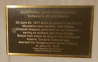Memorial to Medal of Honor recipient Corporal Clinton Greaves, 9th US Cavalry, at Fort Bayard, New Mexico