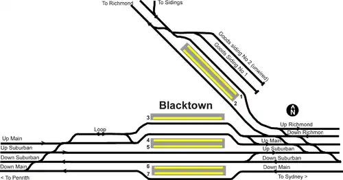 Blacktown railway station is located on the Main Western line, serving the Sydney suburb of Blacktown. It is served by Sydney Trains T1 Western Line and T5 Cumberland Line services and NSW TrainLink Intercity Blue Mountains Line and regional Central West XPT services.
