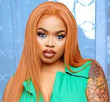 While in the UK, she met a Cameroonian artist who hooked her up with her first studio session. Back then the artist went by stage name ‘Swagger Queen’. By 2015, she released her first single ‘Killa’ produced by Ayo Beats. She later got in contact with Cameroonian-based music producer Mr. Elad who wrote her first official single ‘Kam we stay’ in 2016 produced by Cameroonian-based producer Philbillbeatz. After dropping the single, Blanche decided it was time to move back to her motherland and connect more with the industry she was trying to build a career from. With the success of ‘Kam we stay’, Blanche again in 2017 collaborated with Philbillbeatz on another single she wrote titled ‘Mimbayeur’ which features rapper Minks. With more success on the single which blew up YouTube with over 5million views, Blanche Bailly became a house hold name in the Central African Music scene. She later dropped more hits like; ‘Dinguo, Bonbon and most recently ‘Ndolo’ and ‘Ton pied, mon pied’ and her latest Hit ‘Argent’. Blanche has performed in sold-out shows within Cameroon and countries like Gabon, Malabo, France, Geneva and in 2018 did a successful Europe club tour. Blanche Bailly's talent and hard work has been rewarded with nominations for Best Female Central African Artist at the AFRIMA, Best Urban and Revelation of the year at Canal D’or[4] and winning Revelation of the year at Balafon Music Awards in 2016.[5][6]