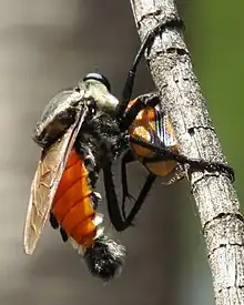 | Giant Yellow Robber Fly (Blepharotes coriarius) with beetle prey. | |