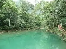 Blue Creek is a village in the Toledo District of Belize. It is a Mopan people and Kekchi village of about 270 people. The community lies along flat roads, spanning both sides of Blue Creek. Clusters of thatch huts border both sides of Blue Creek, a beautiful, clear stream emerging from the surrounding thick jungle. The colour of blue-green pool where Maya women beat their laundry on the smooth stones gave the village its name. The banks are lined with tall shady trees. The reflection of the thick jungle rainforest, which lines both sides, is clearly visible in the surface of the creek.