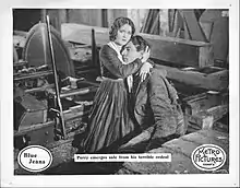 Blue Jeans is a 1917 American silent drama film, based on the 1890 play Blue Jeans by Joseph Arthur that opened in New York City to great popularity. The sensation of the play was a dramatic scene where the unconscious hero is placed on a board approaching a huge buzz saw in a sawmill, later imitated to the point of cliché.[1][2]