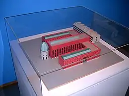 In 1995, the museum moved to its present location, a former industrial site named 'Céramique'. The new building was designed by Italian architect Aldo Rossi. With its rocket-shaped cupola overlooking the river Maas, it is one of Maastricht's most prominent modern buildings.[1]