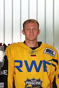 Boris Blank (born July 10, 1978) is a German professional ice hockey player. He is currently an unrestricted free agent who last played for Iserlohn Roosters in the Deutsche Eishockey Liga (DEL). He joined the Roosters as a free agent on June 25, 2014, after previously playing in nine seasons with the Krefeld Pinguine.[1] In the 2016–17 season with the Roosters, Blank contributed with 8 goals and 16 points in 52 games as Iserlohn finished out of playoff contention. On March 3, 2017, it was announced that Blank's contract would not be renewed after three seasons with the Roosters.[2]